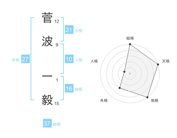 菅波 一毅さんの総格は37画の5点!
