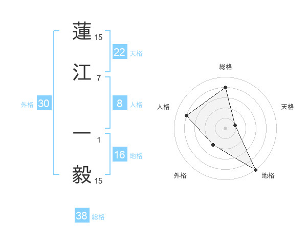 蓮江 一毅さんの総格は38画の4点!