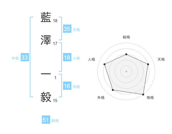 藍澤 一毅さんの総格は51画の3点!