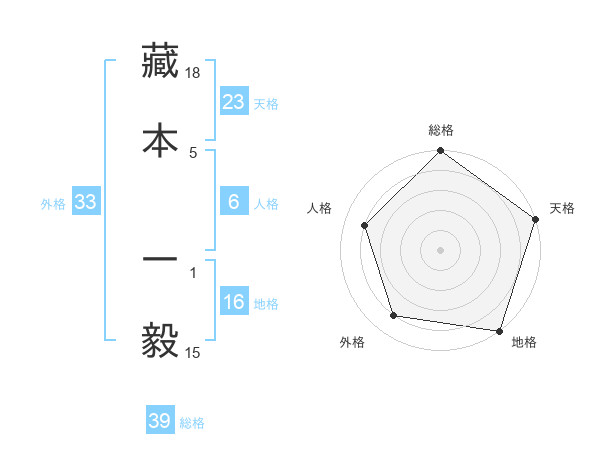 藏本 一毅さんの総格は39画の5点!