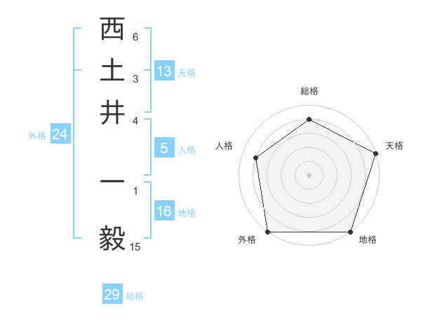 西土井 一毅さんの外格は24画の5点!