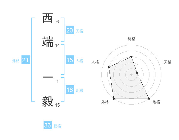 西端 一毅さんの総格は36画の3点!