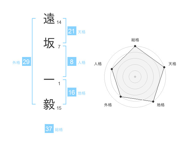 遠坂 一毅さんの地格は16画の5点!