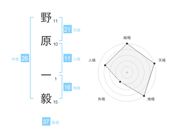 野原 一毅さんの総格は37画の5点!