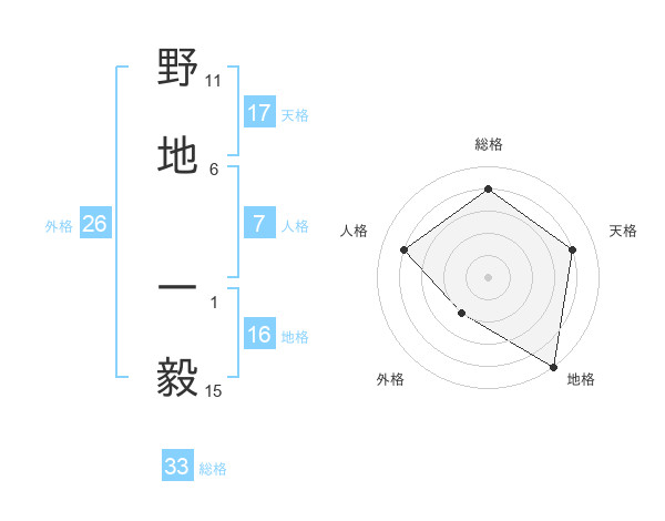 野地 一毅さんの天格は17画の4点!