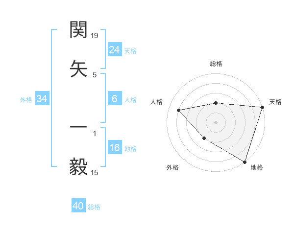 関矢 一毅さんを姓名の画数から五運を鑑定