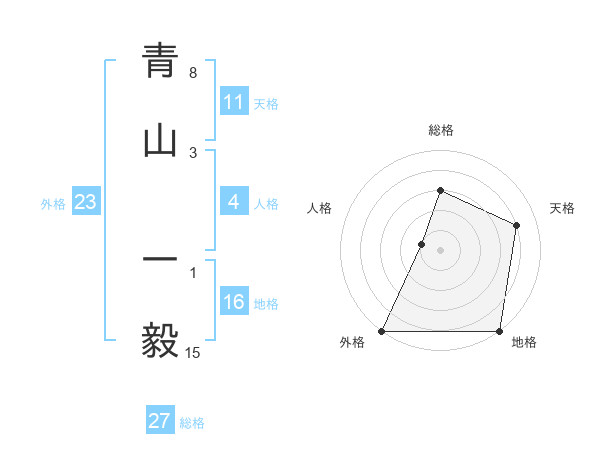 青山 一毅さんの総格は27画の3点!