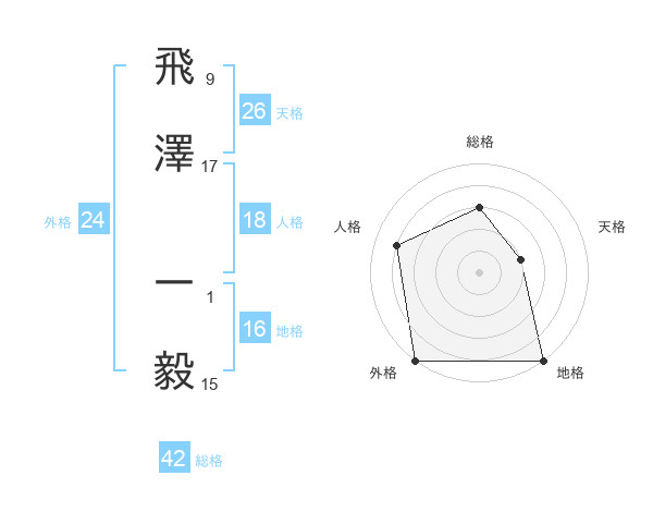 飛澤 一毅さんの外格は24画の5点!