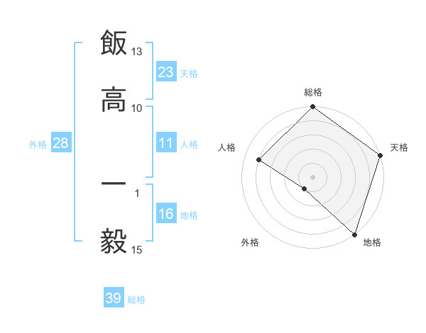 飯高 一毅さんの天格は23画の5点!