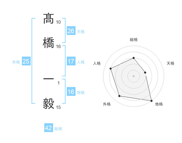 髙橋 一毅さんの総格は42画の3点!
