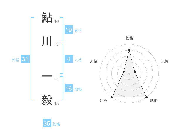 鮎川 一毅さんの総格は35画の4点!