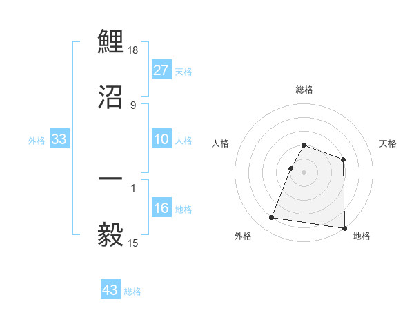 鯉沼 一毅さんの総格は43画の2点!
