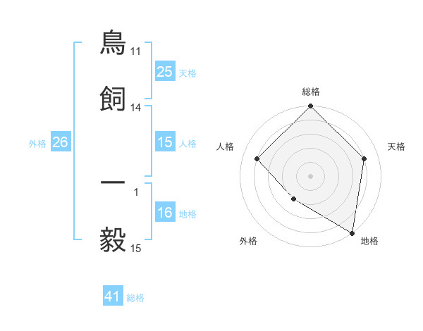 鳥飼 一毅さんを姓名の画数から五運を鑑定
