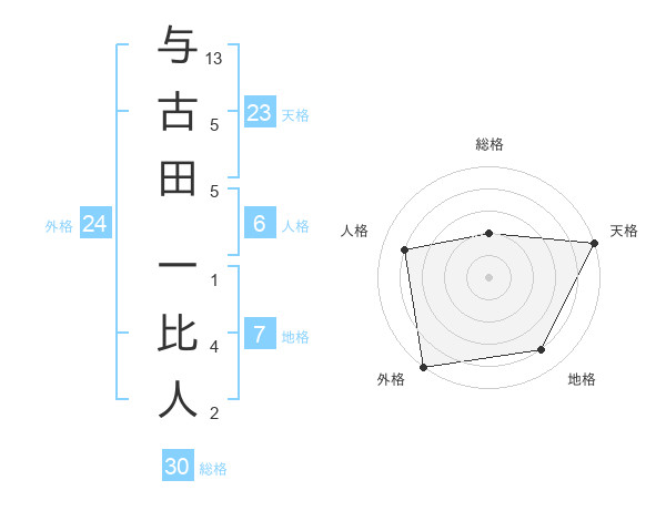 与古田 一比人さんを姓名の画数から五運を鑑定