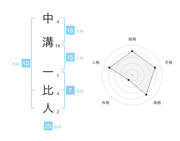 中溝 一比人さんを姓名の画数から五運を鑑定
