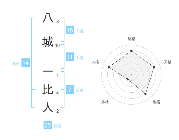 八城 一比人さんの総格は25画の4点!