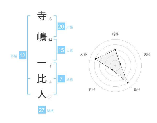 寺嶋 一比人さんの総格は27画の3点!