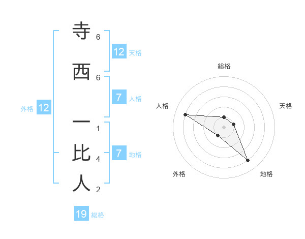 寺西 一比人さんを姓名の画数から五運を鑑定