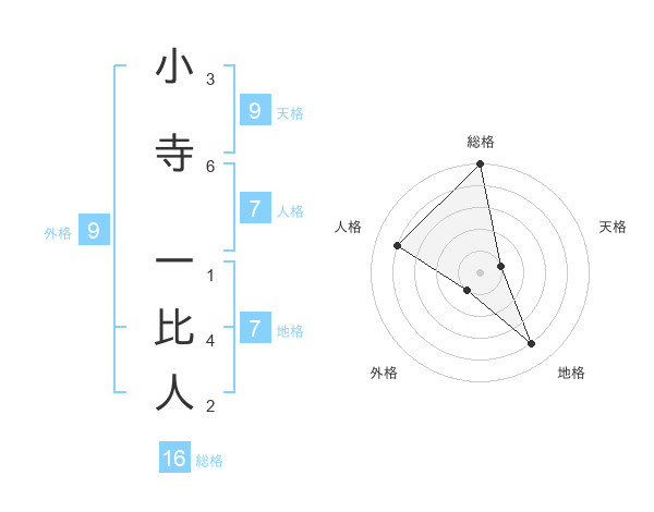 小寺 一比人さんの総格は16画の5点!
