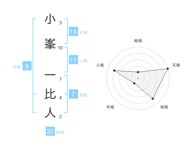小峯 一比人さんの総格は20画の1点!