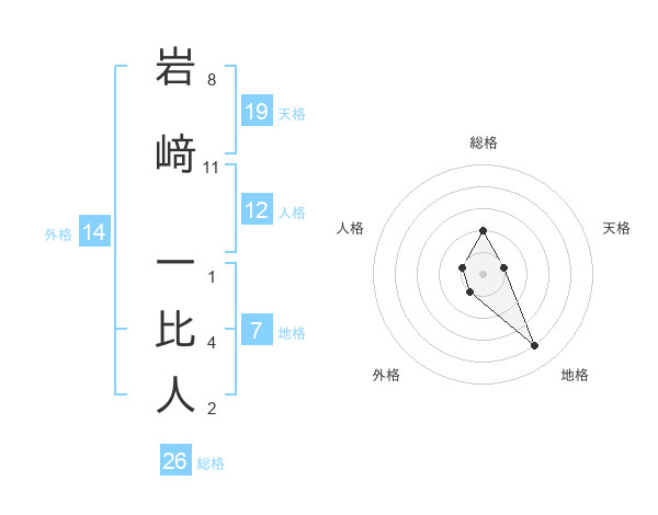 岩﨑 一比人さんの地格は7画の4点