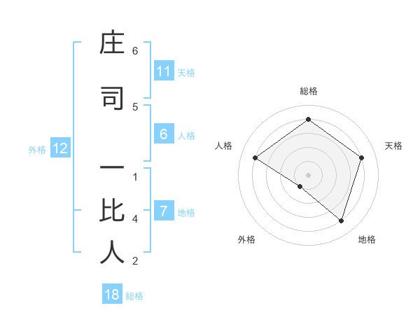 庄司 一比人さんの天格は11画の4点!