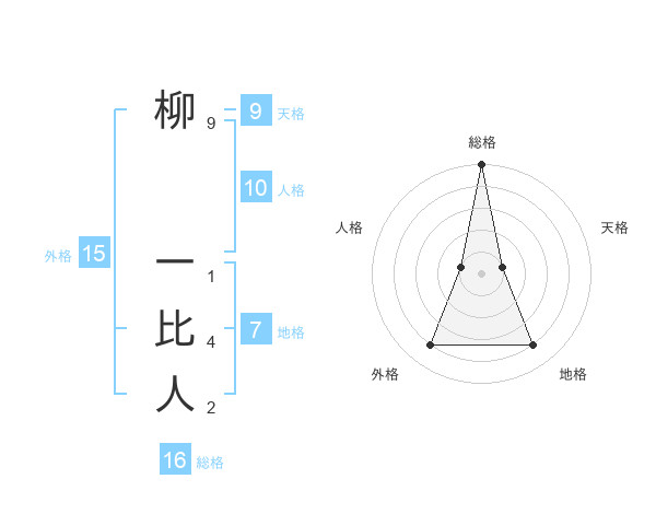 柳 一比人さんの総格は16画の5点!