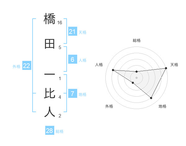 橋田 一比人さんを姓名の画数から五運を鑑定