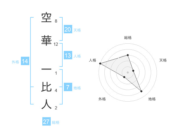空華 一比人さんの総格は27画の3点!