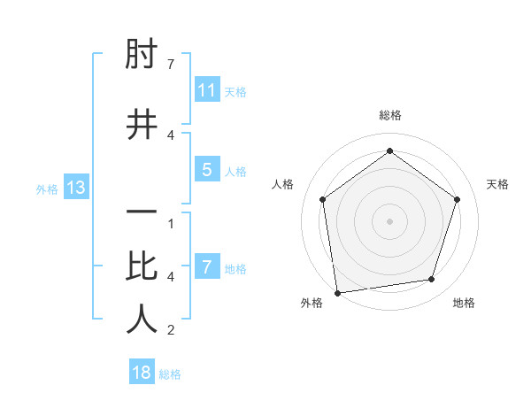 肘井 一比人さんの天格は11画の4点!