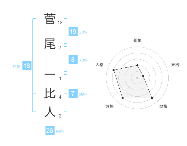 菅尾 一比人さんを姓名の画数から五運を鑑定