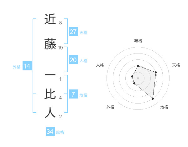 近藤 一比人さんを姓名の画数から五運を鑑定