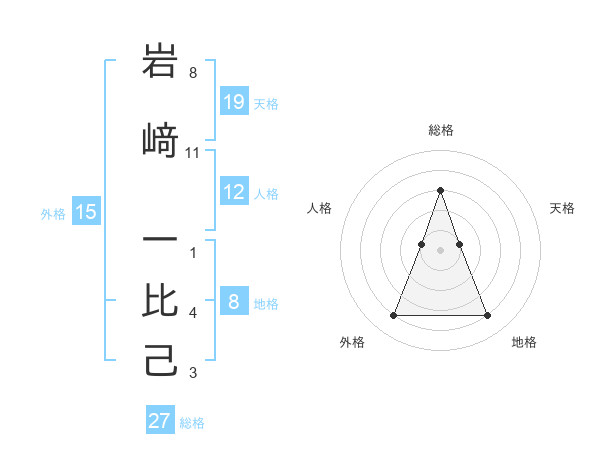 岩﨑 一比己さんを姓名の画数から五運を鑑定