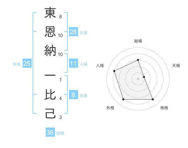 東恩納 一比己さんの外格は25画の4点!