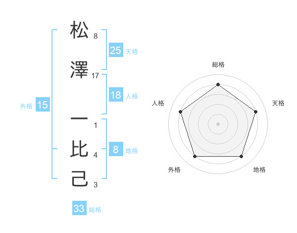 松澤 一比己さんの総格は33画の4点!