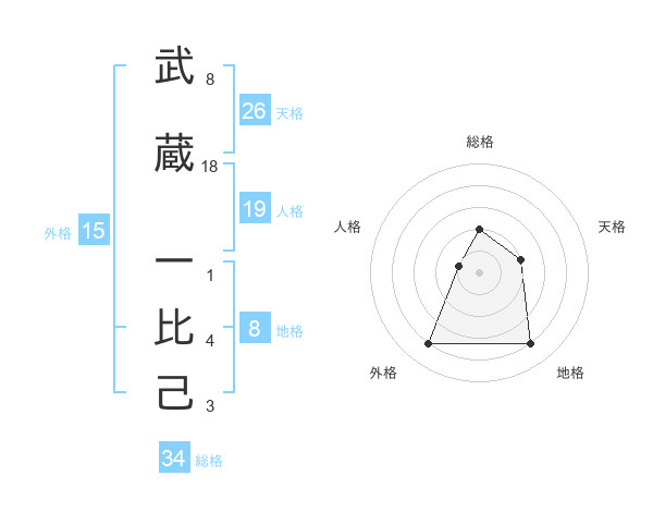 武蔵 一比己さんを姓名の画数から五運を鑑定