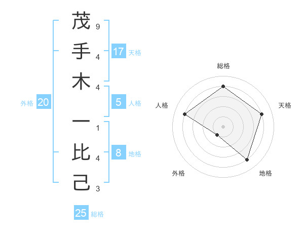 茂手木 一比己さんを姓名の画数から五運を鑑定