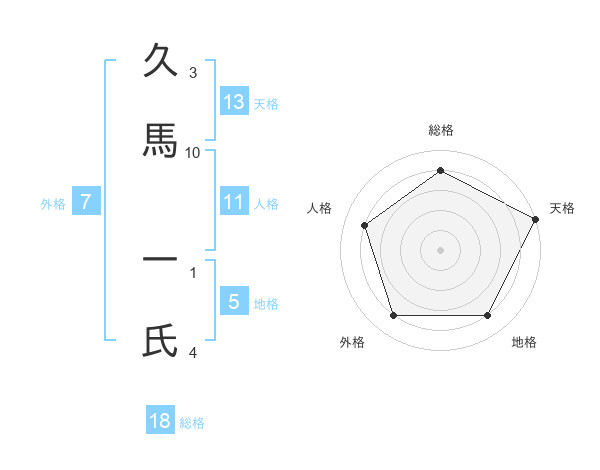 久馬 一氏さんの天格は13画の5点!