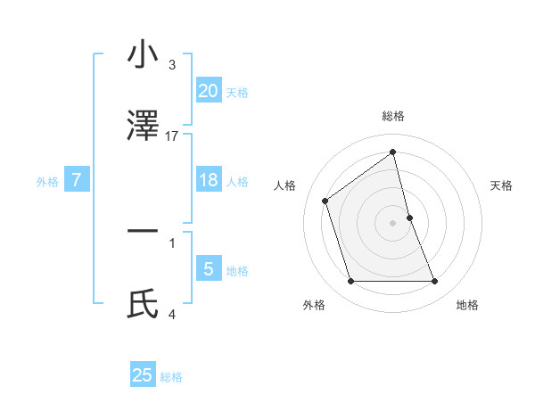小澤 一氏さんを姓名の画数から五運を鑑定