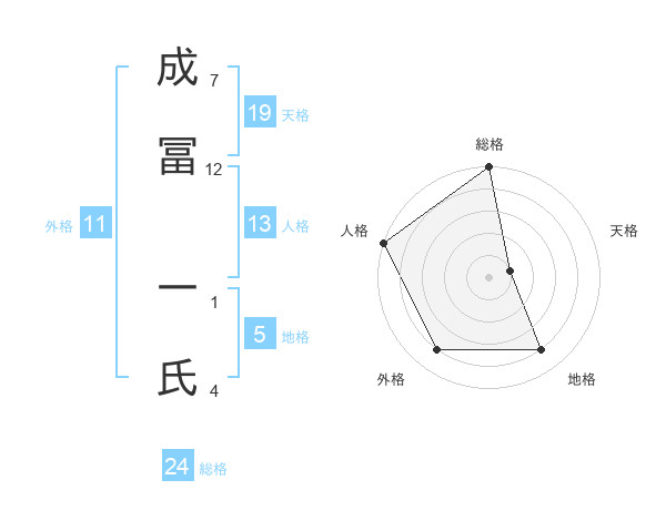 成冨 一氏さんを姓名の画数から五運を鑑定