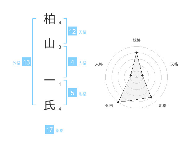 柏山 一氏さんの総格は17画の4点!