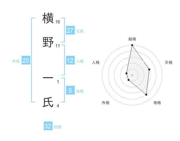 横野 一氏さんの総格は32画の5点!