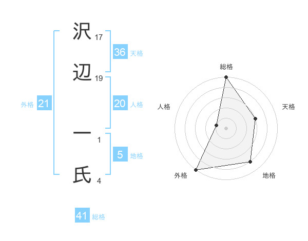 沢辺 一氏さんの総格は41画の5点!