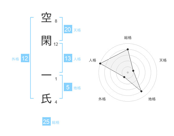 空閑 一氏さんの総格は25画の4点!