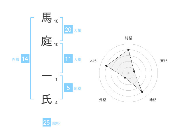 馬庭 一氏さんの総格は25画の4点!