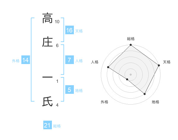 高庄 一氏さんの総格は21画の5点!