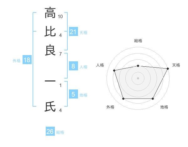 高比良 一氏さんを姓名の画数から五運を鑑定