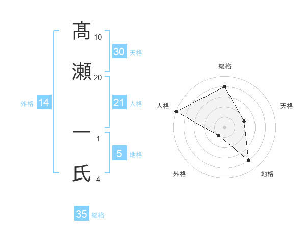 髙瀬 一氏さんの総格は35画の4点!