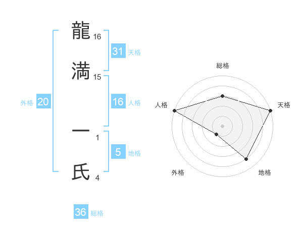 龍満 一氏さんの天格は31画の5点!