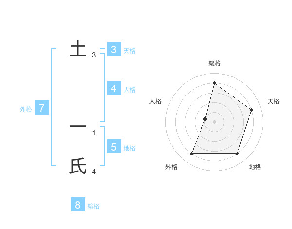 土 一氏さんの総格は8画の4点!